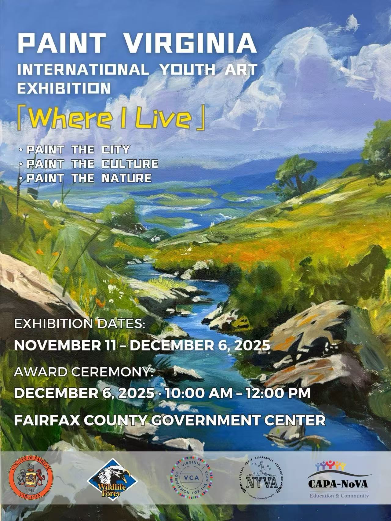 Pose with His Art Work Exhibited in Farifax County Government Center